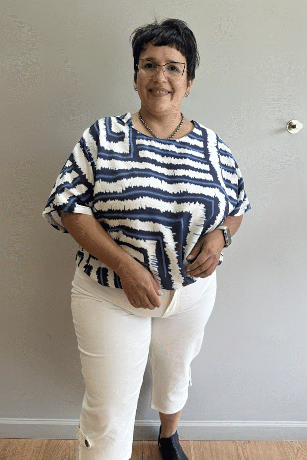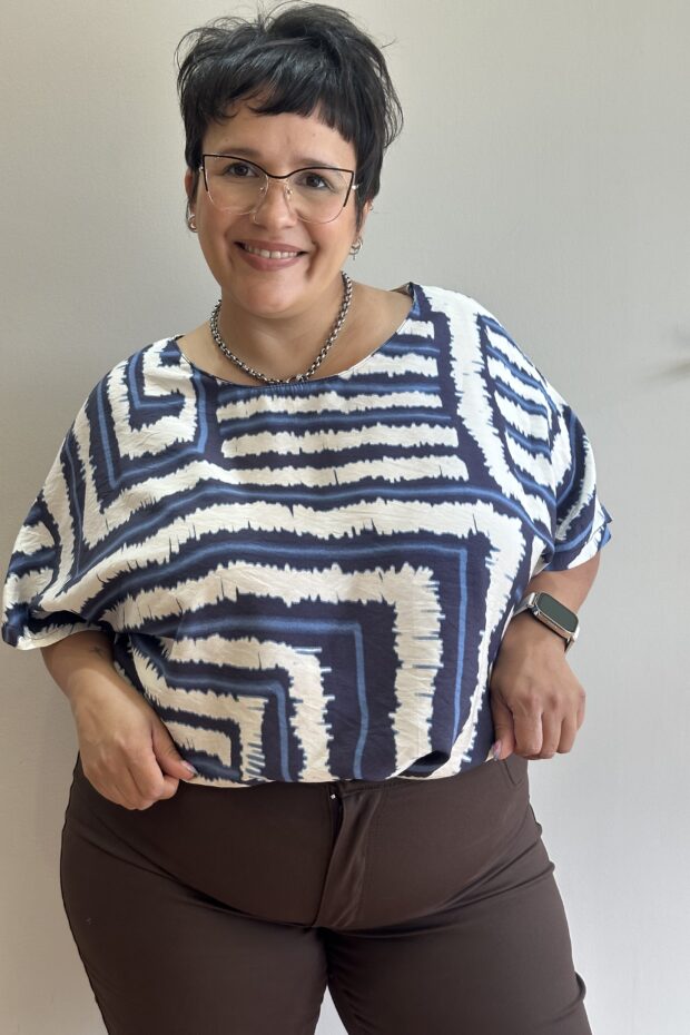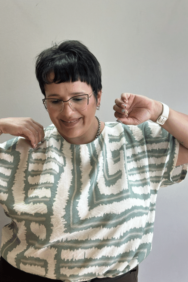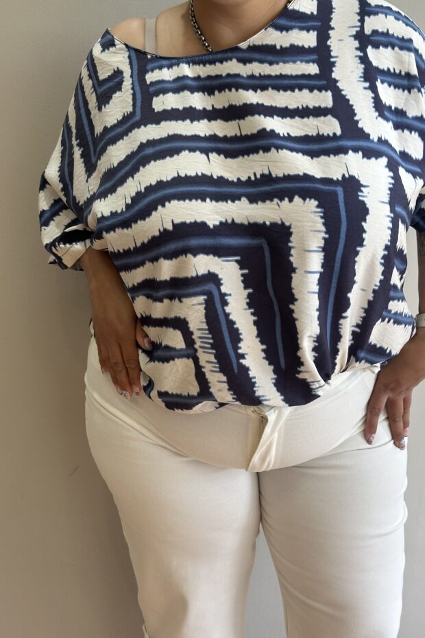Su corte amplio oversize permite libertad de movimiento y un calce relajado, mientras que el estampado geométrico aporta personalidad y modernidad. Perfecta para combinar con jeans, pantalones de vestir o faldas, creando conjuntos versátiles y llenos de estilo.