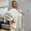 Camisa de lino con calado bordado y cuello mao.