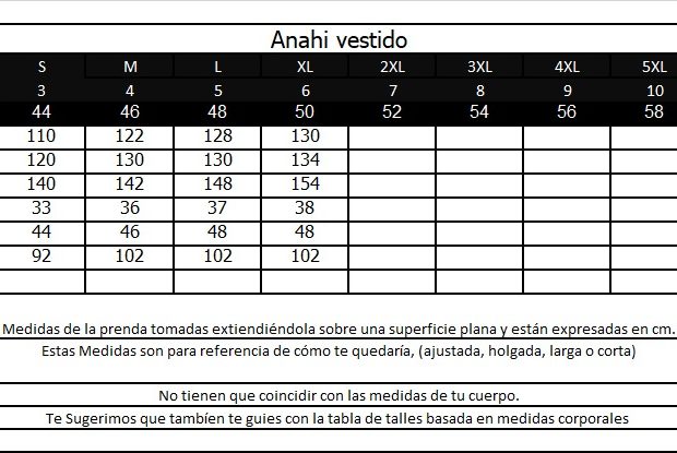 | Medida | Talle 44 | Talle 46 | Talle 48 | Talle 50 |