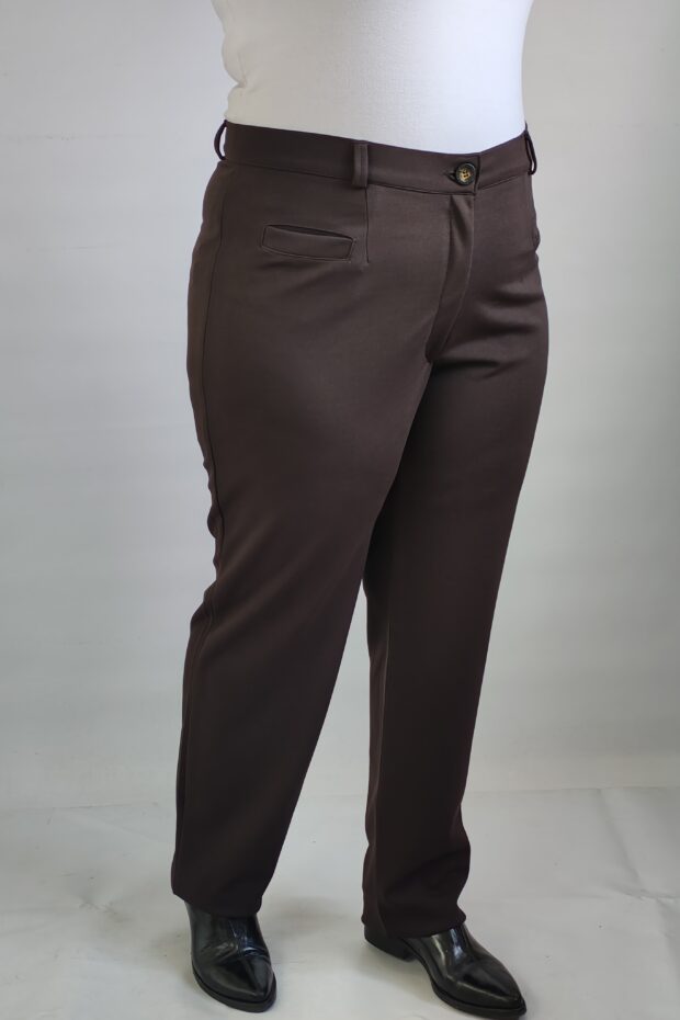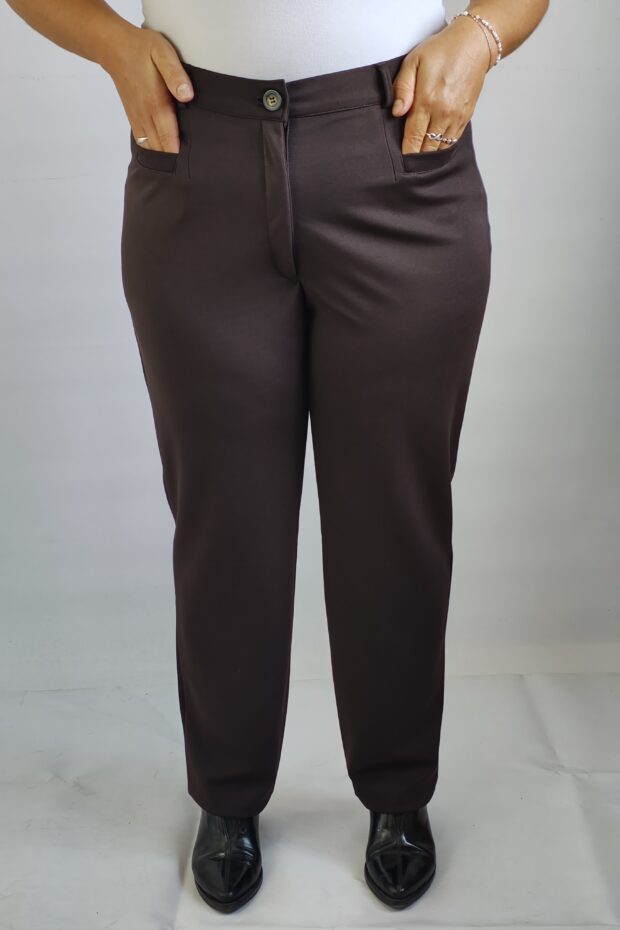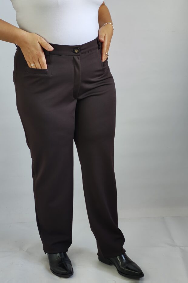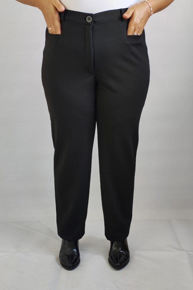 Confeccionado en sarga de punto, elastizada. es recto con bolsillos ojal.