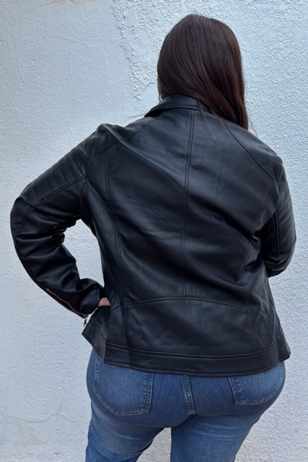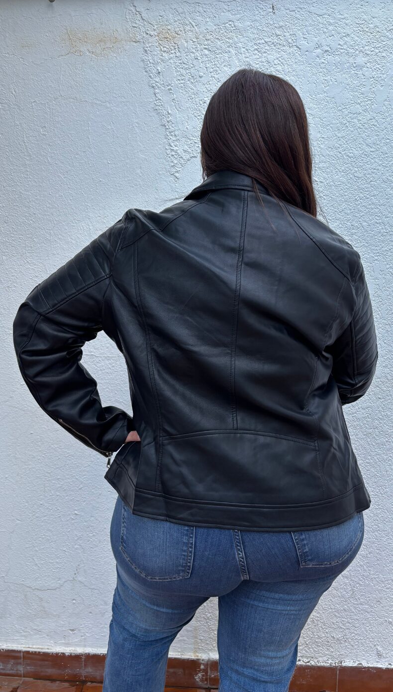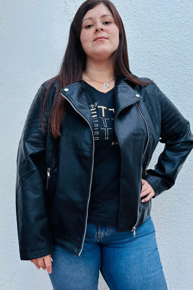 La campera de ecocuero es ese básico imprescindible que transforma cualquier look al instante. Con un diseño clásico de inspiración rockera, aporta carácter, estructura y un toque moderno que nunca pasa de moda.