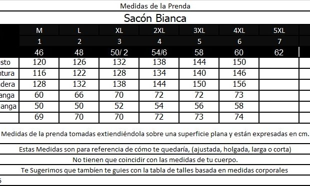 | Ancho Manga | 50 | 50 | 52 | 54 | 56 | 58 |