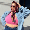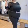 Estefi usa talle 2XL y sus medidas son Busto: 137 cm., Cintura: 121 cm., Cadera:, 155 cm.