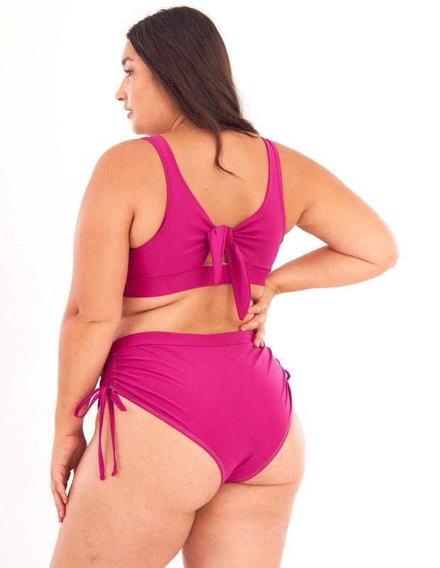Esta Bikini es la predilecta, ultra-favorito, recomendadísimo, por las chicas con mucho busto. Tiene breteles anchos, pieza bajo busto, moño + elástico en espalda para atar y un calce fabuloso. Si estás buscando un top que sea comodísimo pero que a la vez tenga lindo escote, ¡elegí este!