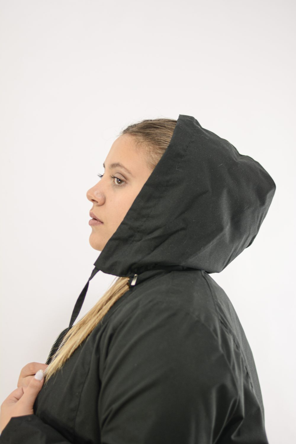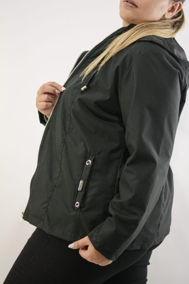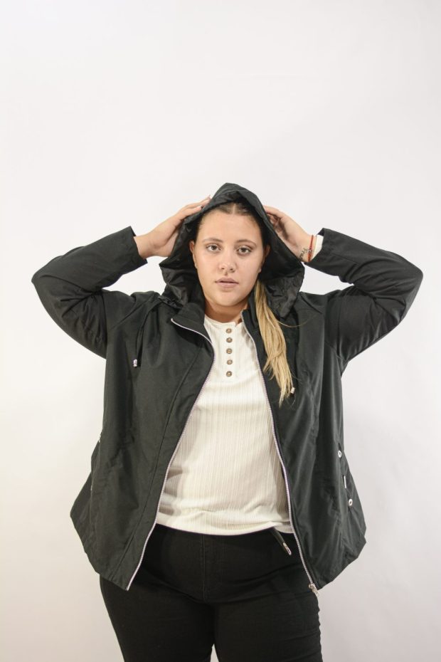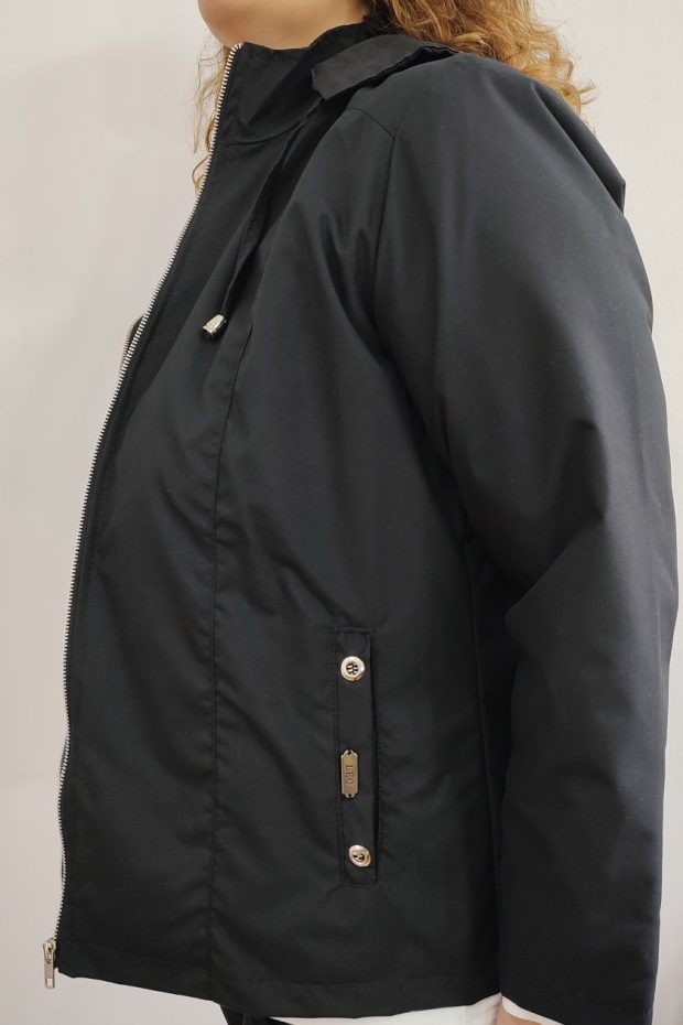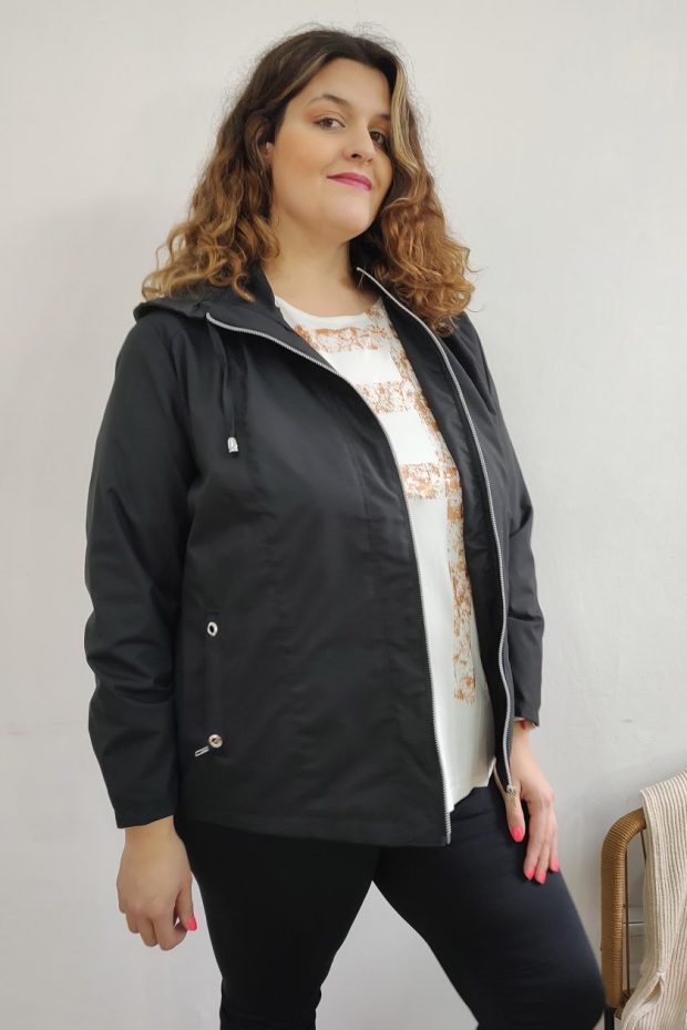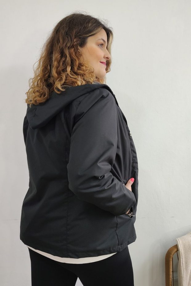 Campera liviana sin abrigo, estilo piloto con capucha desmontable, cierre Metalico.
