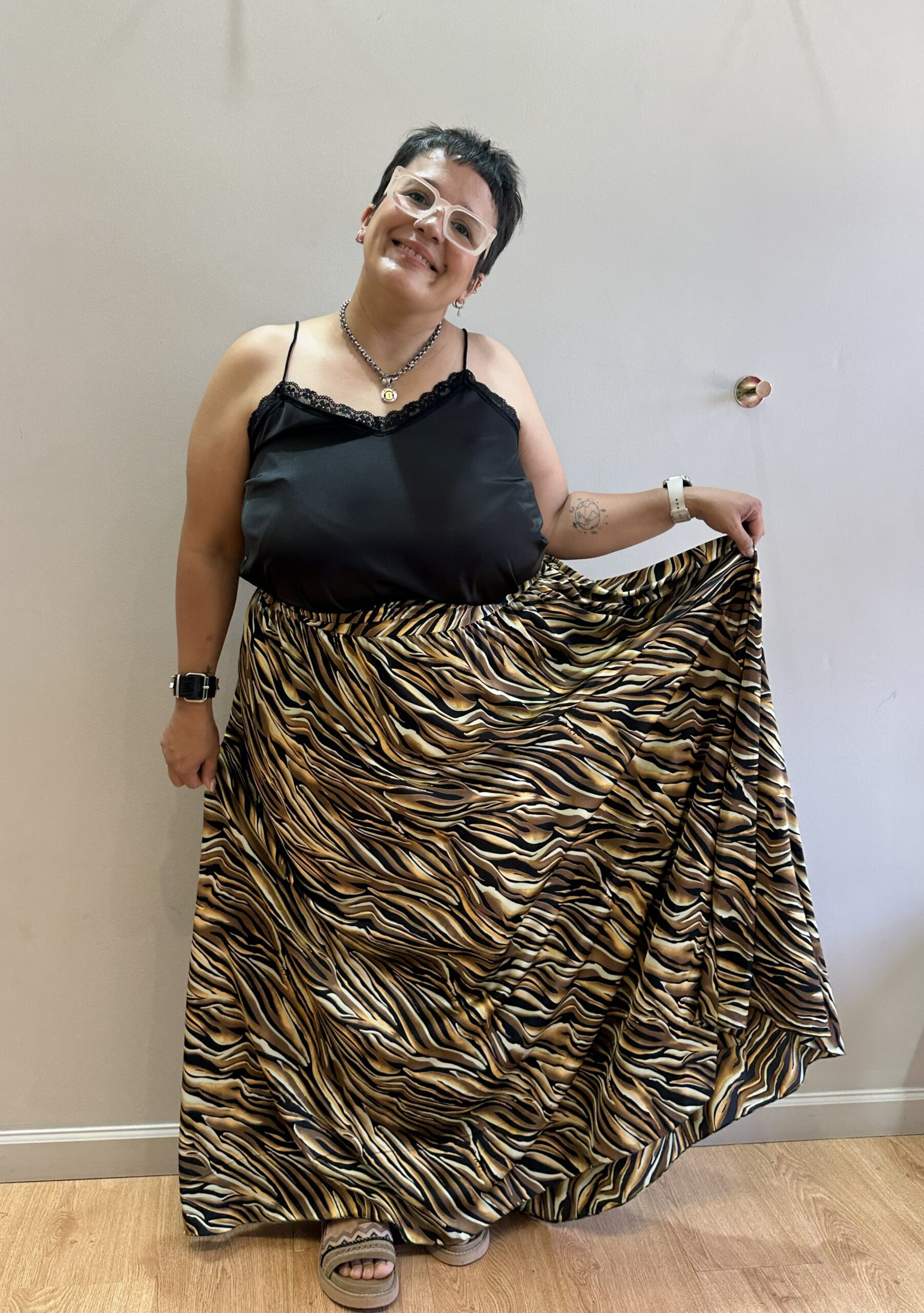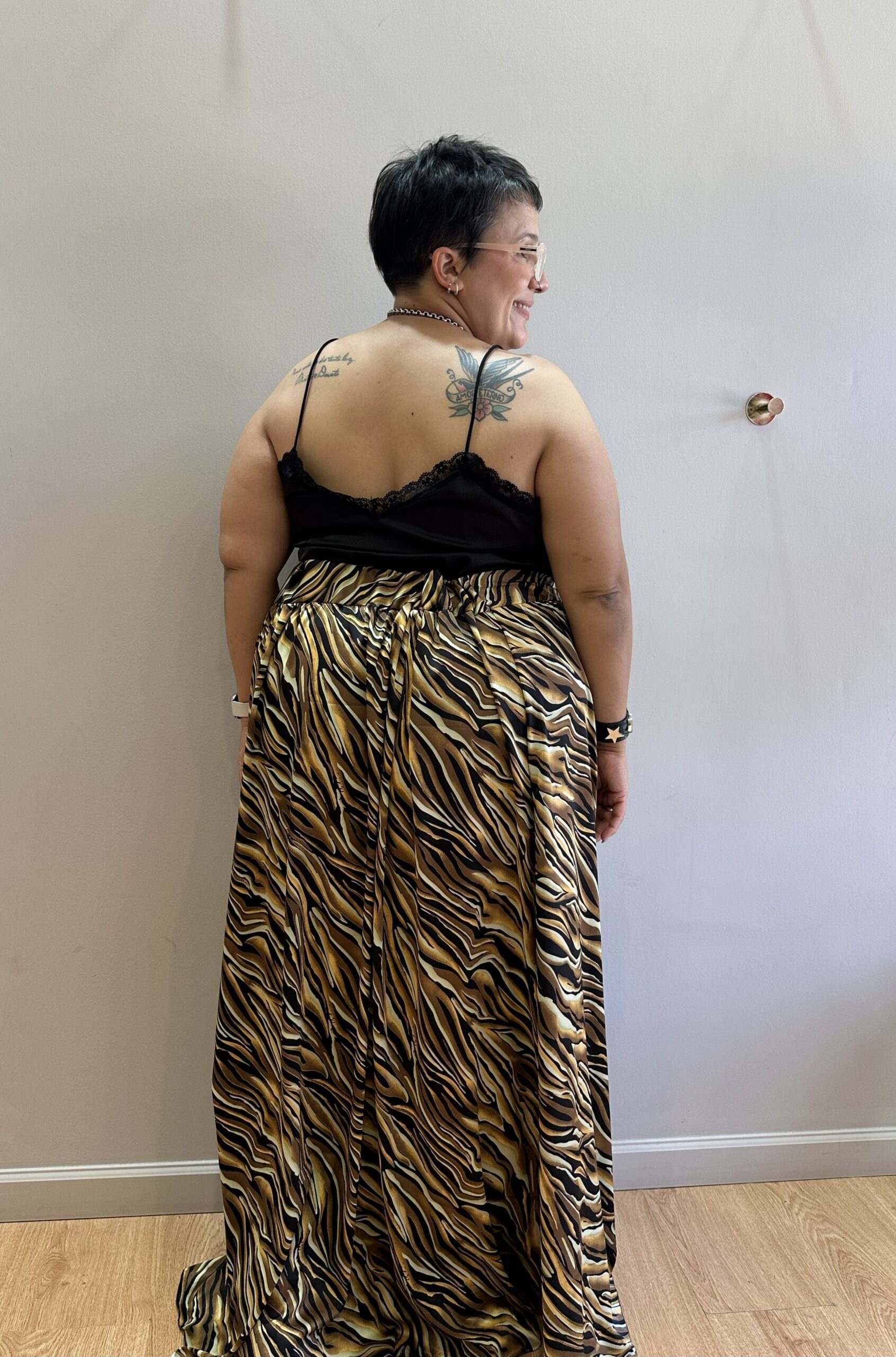 Seda Saten con cintura elastizada.