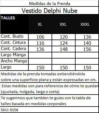 Cont. de Busto: 110 cm., Cont. de Cintura: 100 cm., Cont. de Cadera: 125 cm.