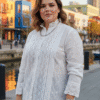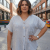 Camisa de algodón con brederie, tiene manga globo con frunces. escote V y botonadura.