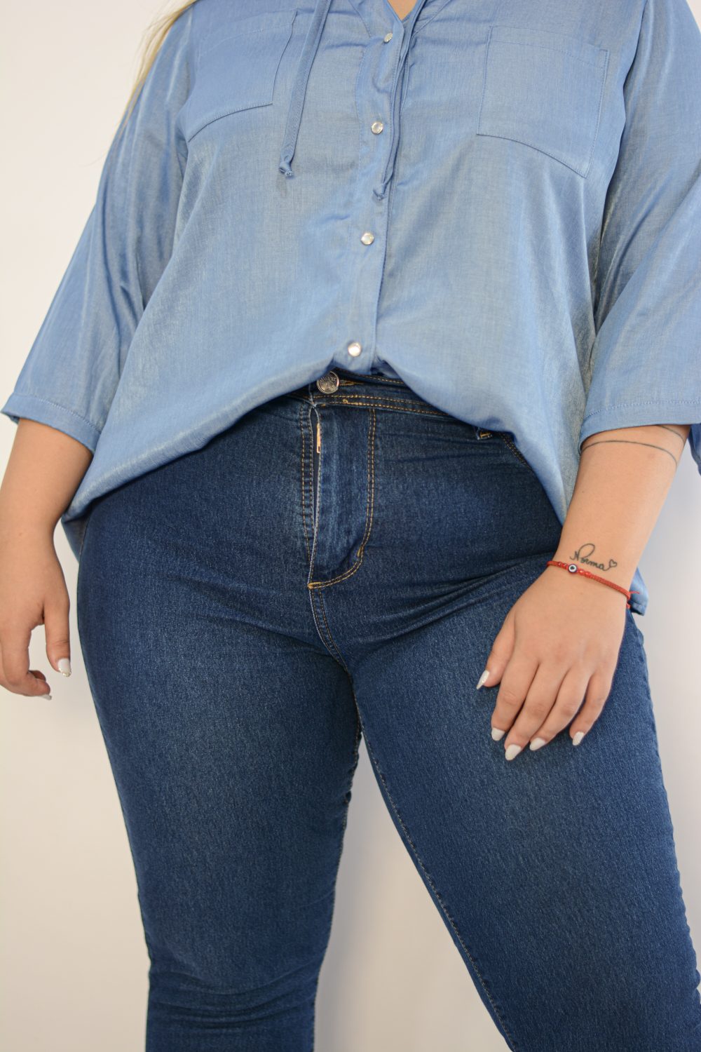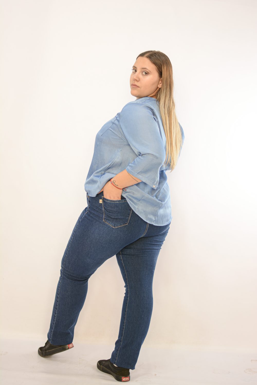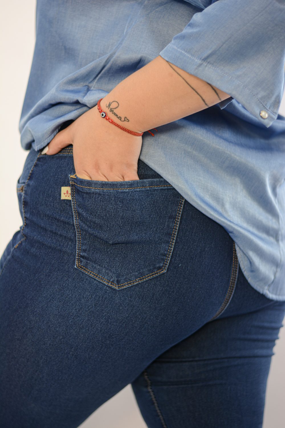 Jean Chupín de lona elastizada con bolsillos atrás.