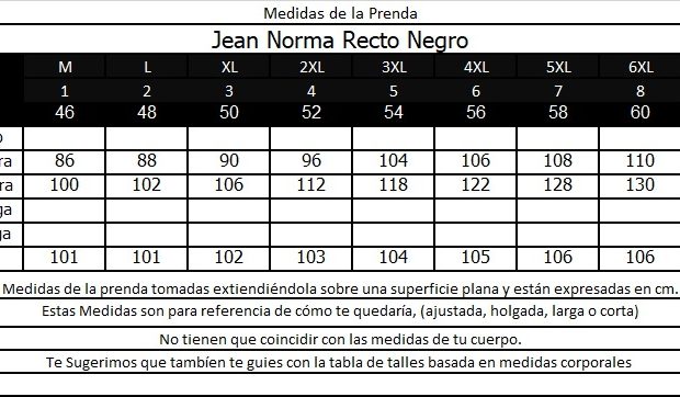 Tabla de Medidas de la Prenda: