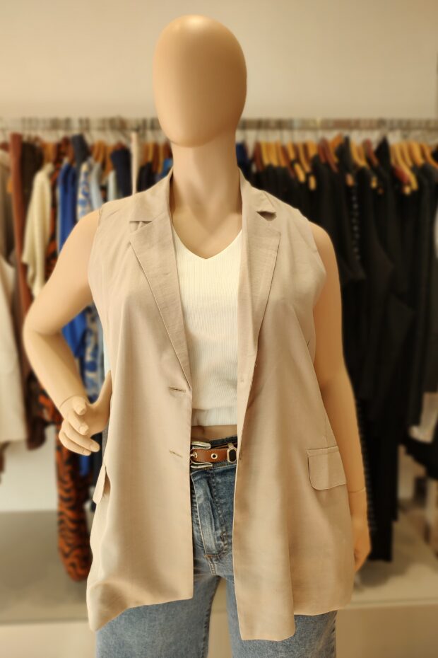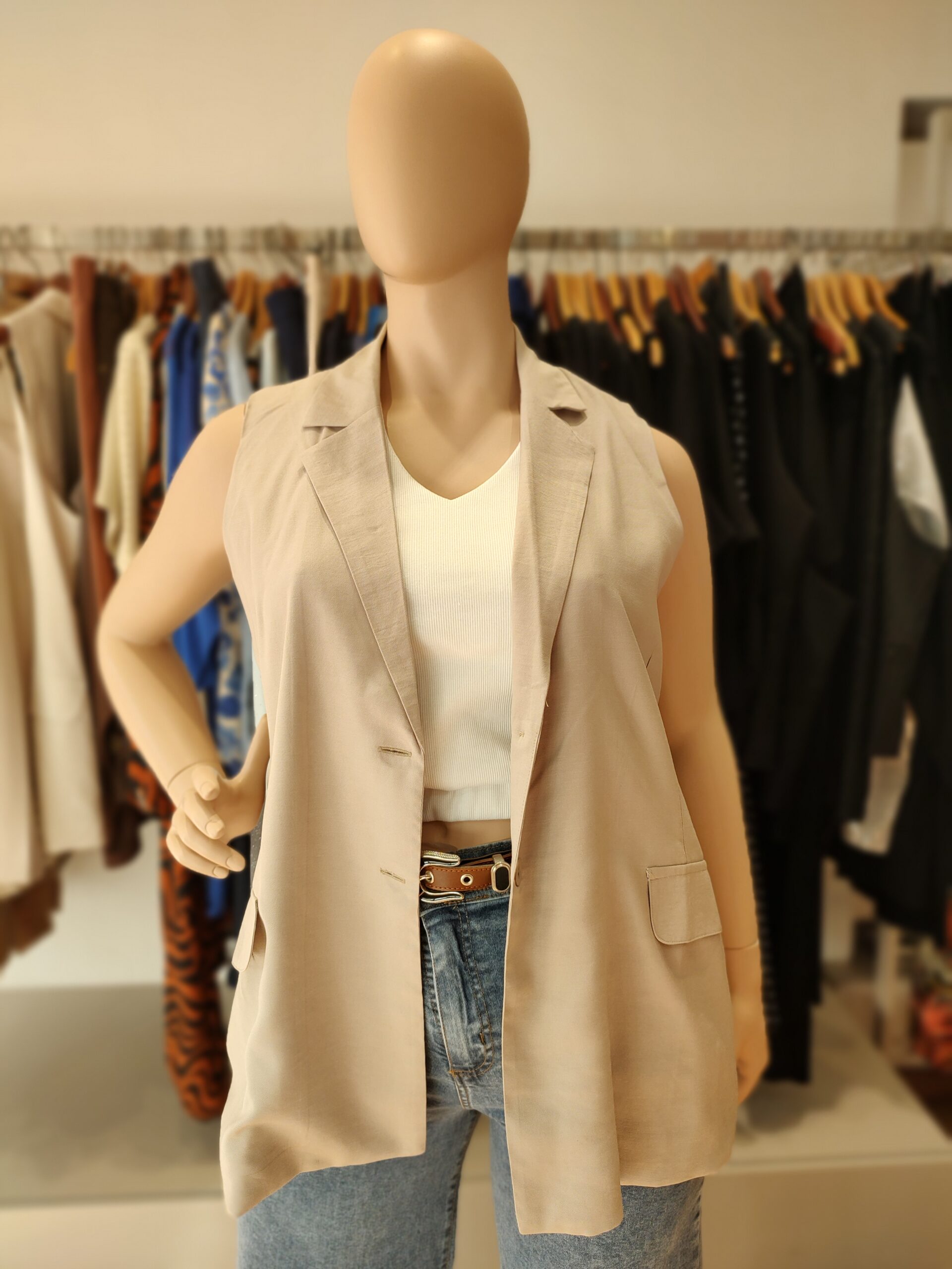 Chaleco confeccionado en tela lino sastrero de excelente calidad, con estructura firme y caída elegante que estiliza la silueta. Su diseño forrado en el interior aporta mayor comodidad, mejor terminación y un calce impecable que eleva cualquier look.