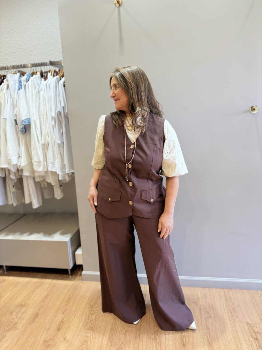 corte palazo con bolsillos y en elastico atrás en la cintura.