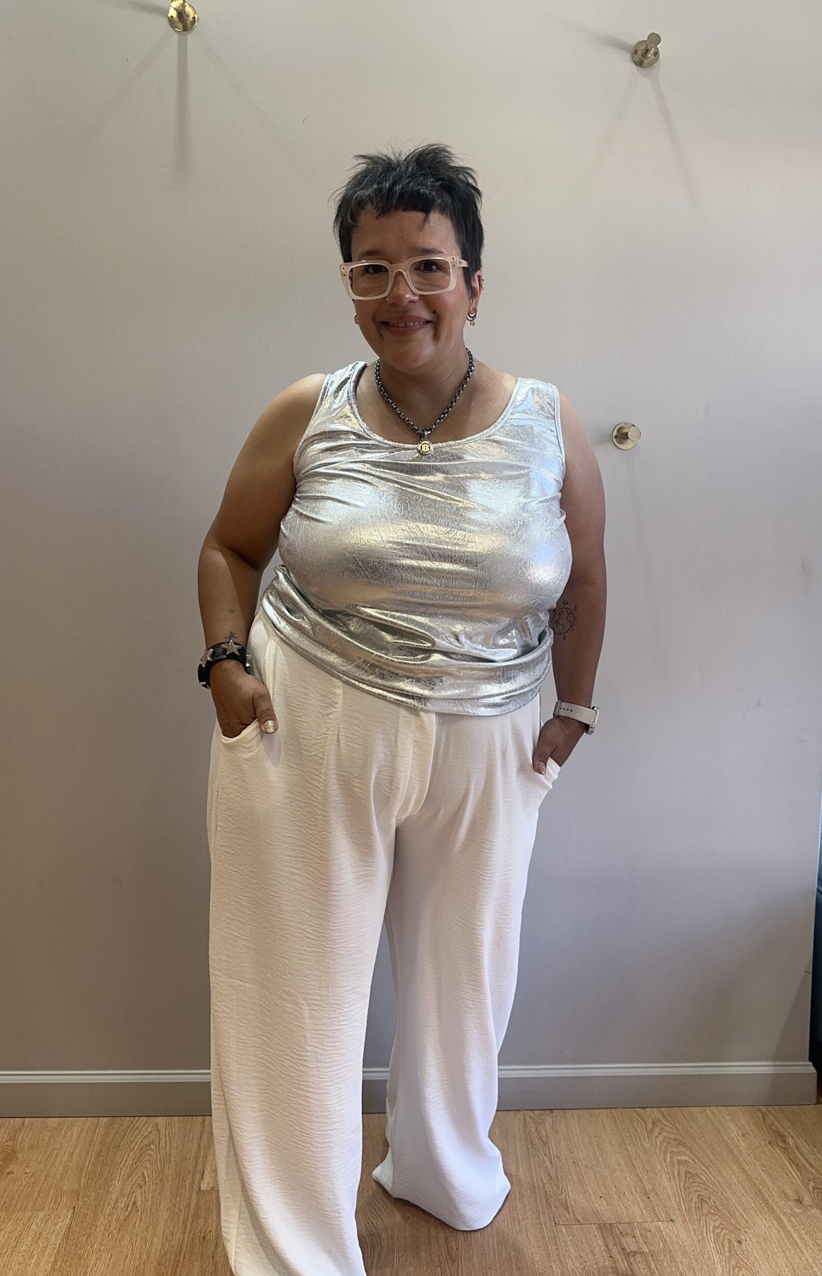 con bretel grueso y sisa cerrada y cuello redondo amplio. super elastizada.
