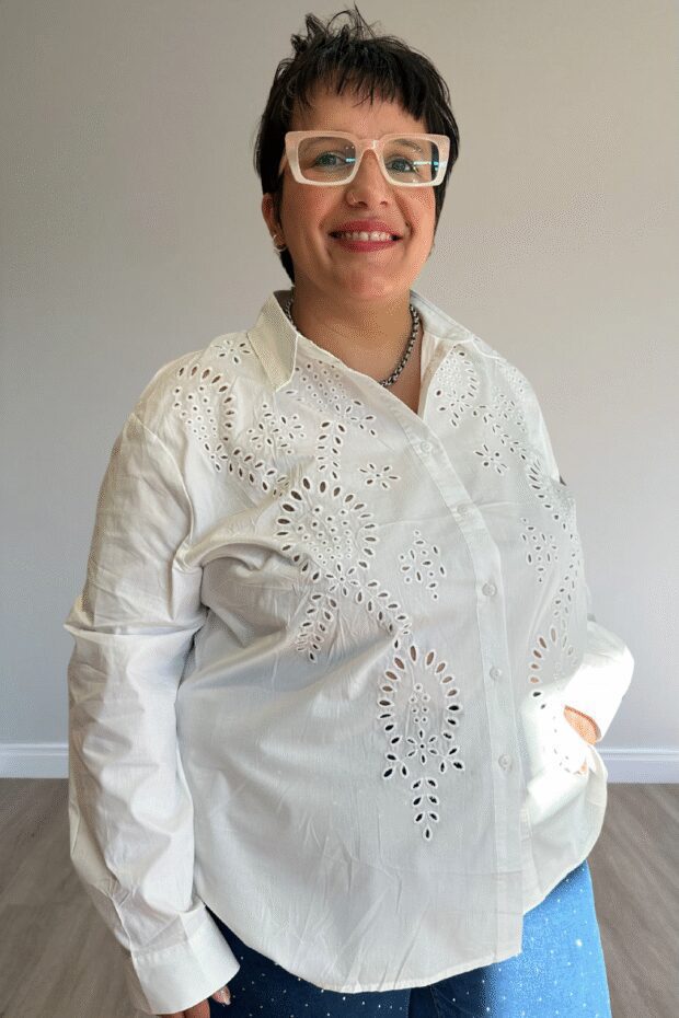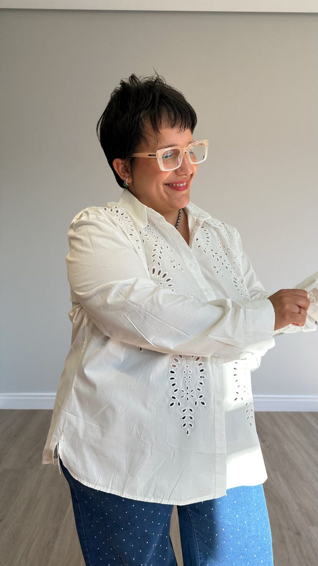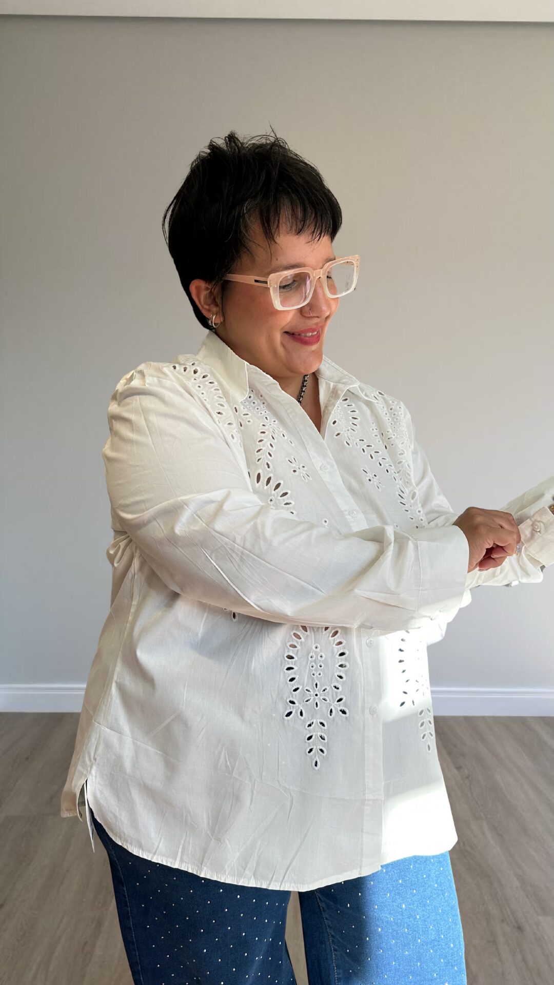 Camisa de algodón con detalles calados.