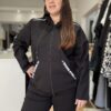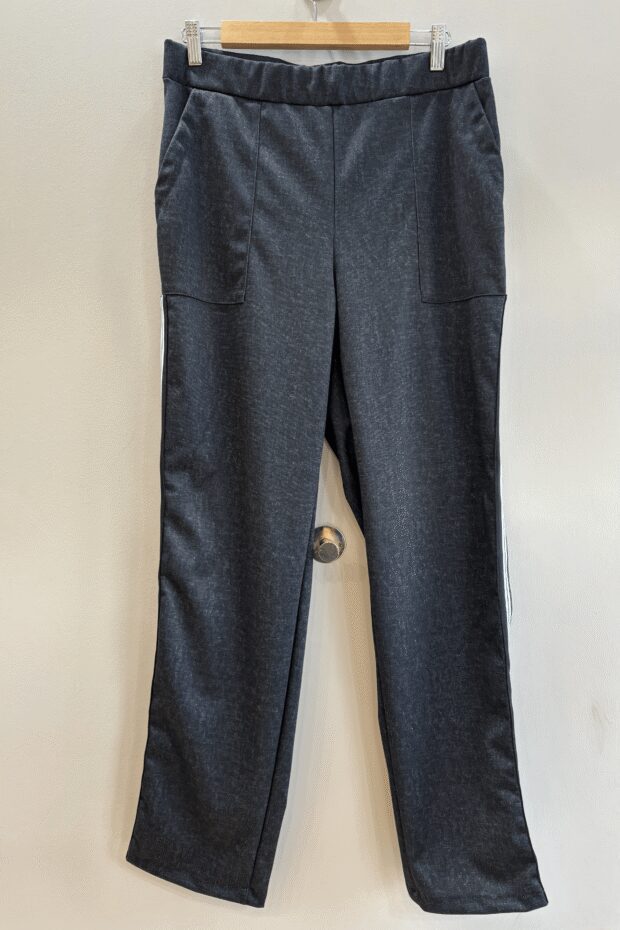 Está confeccionado en tela punto roma, una tela elastizada con buen cuerpo que se adapta al movimiento sin perder su forma. Es ideal para los días de medio tiempo y también para el invierno, porque brinda abrigo sin dejar de ser cómoda.