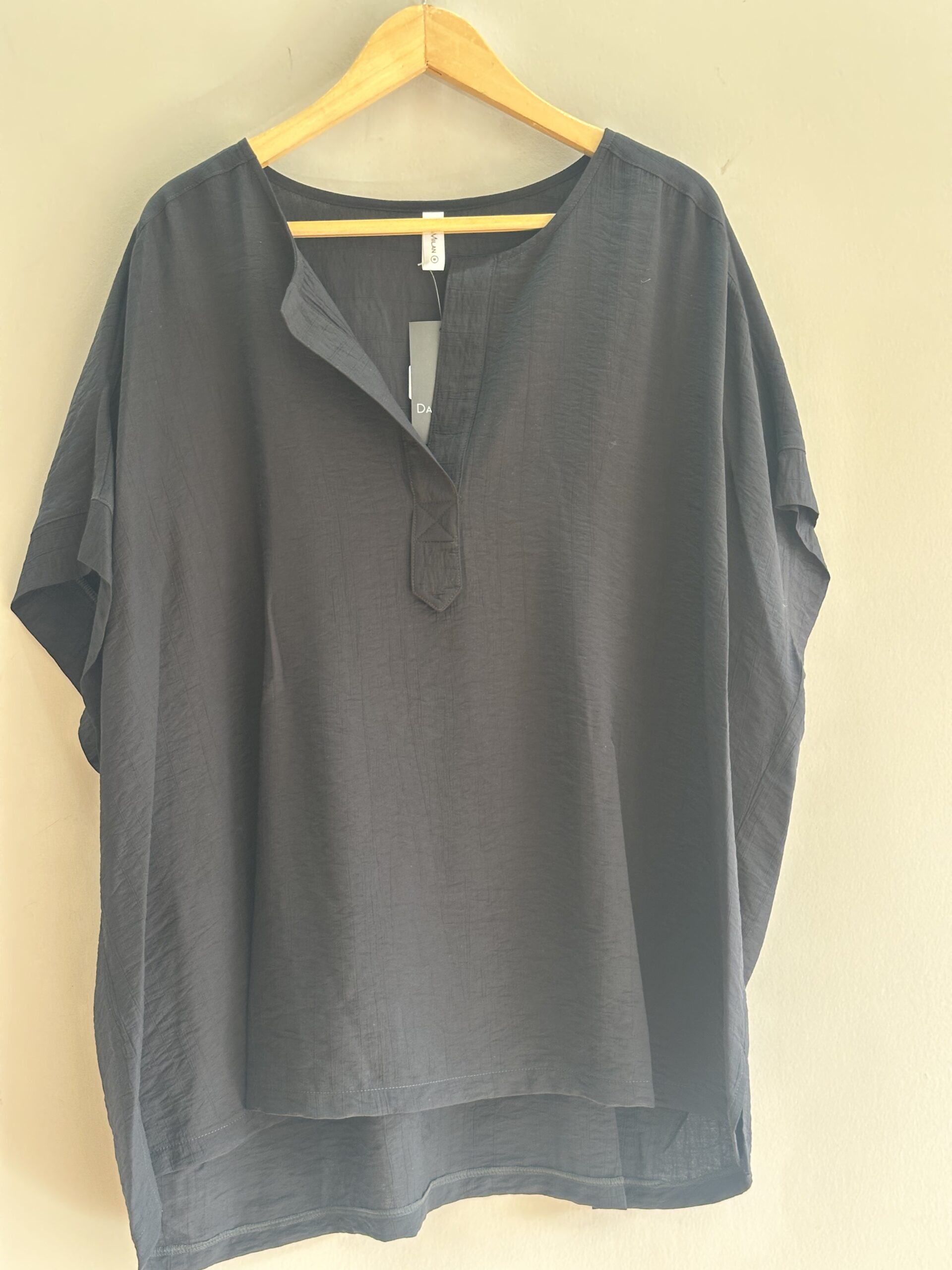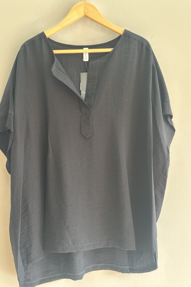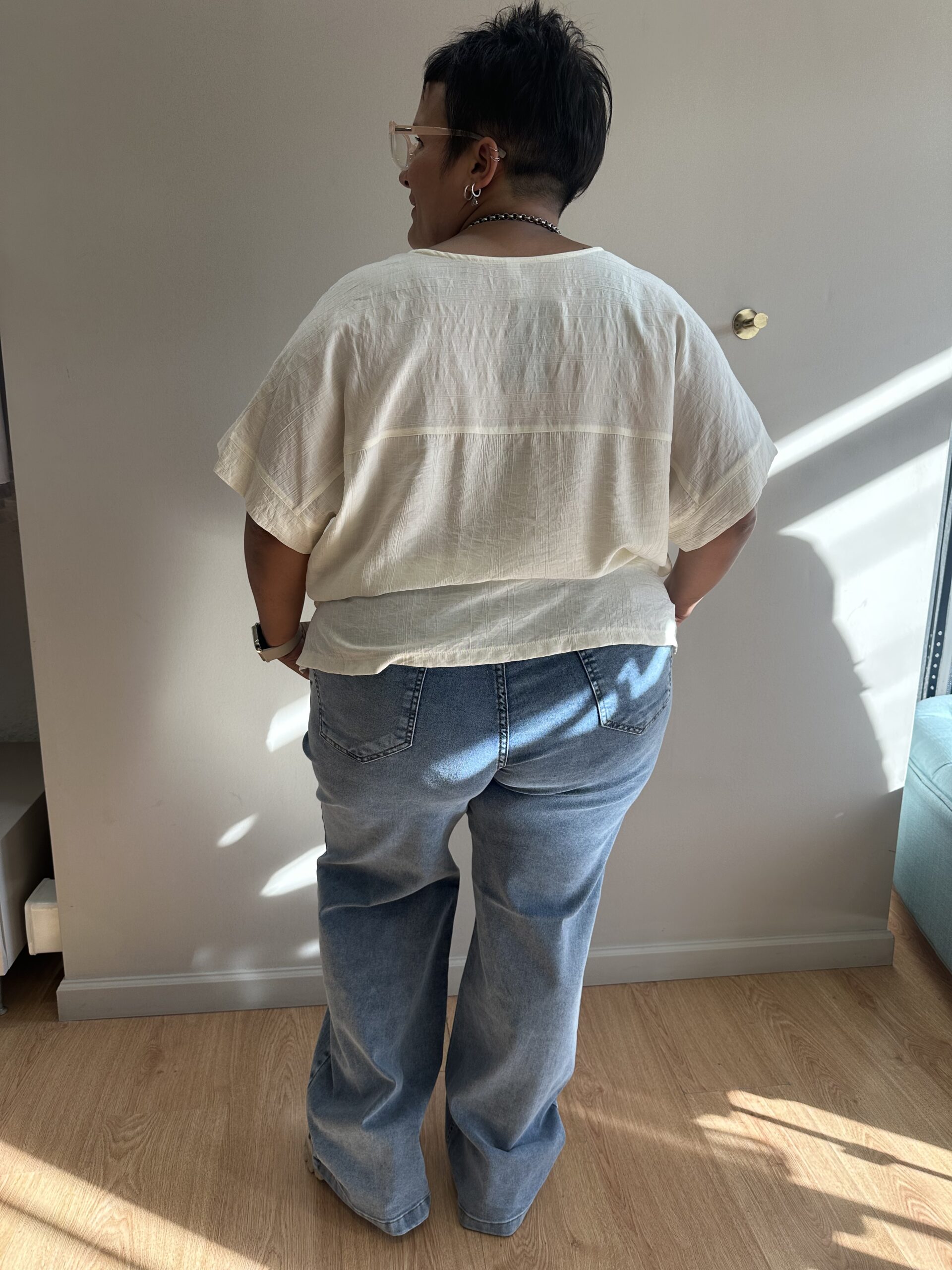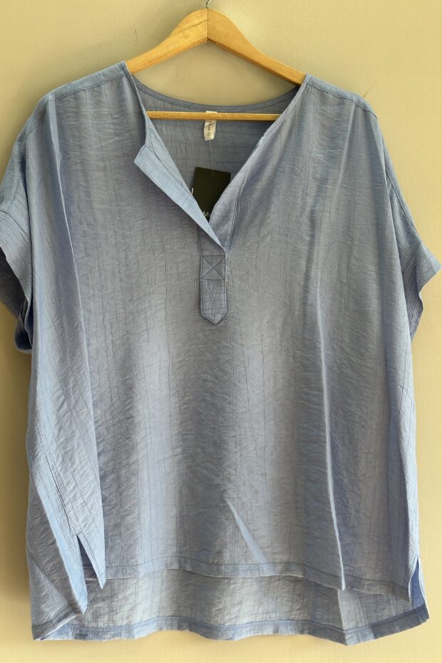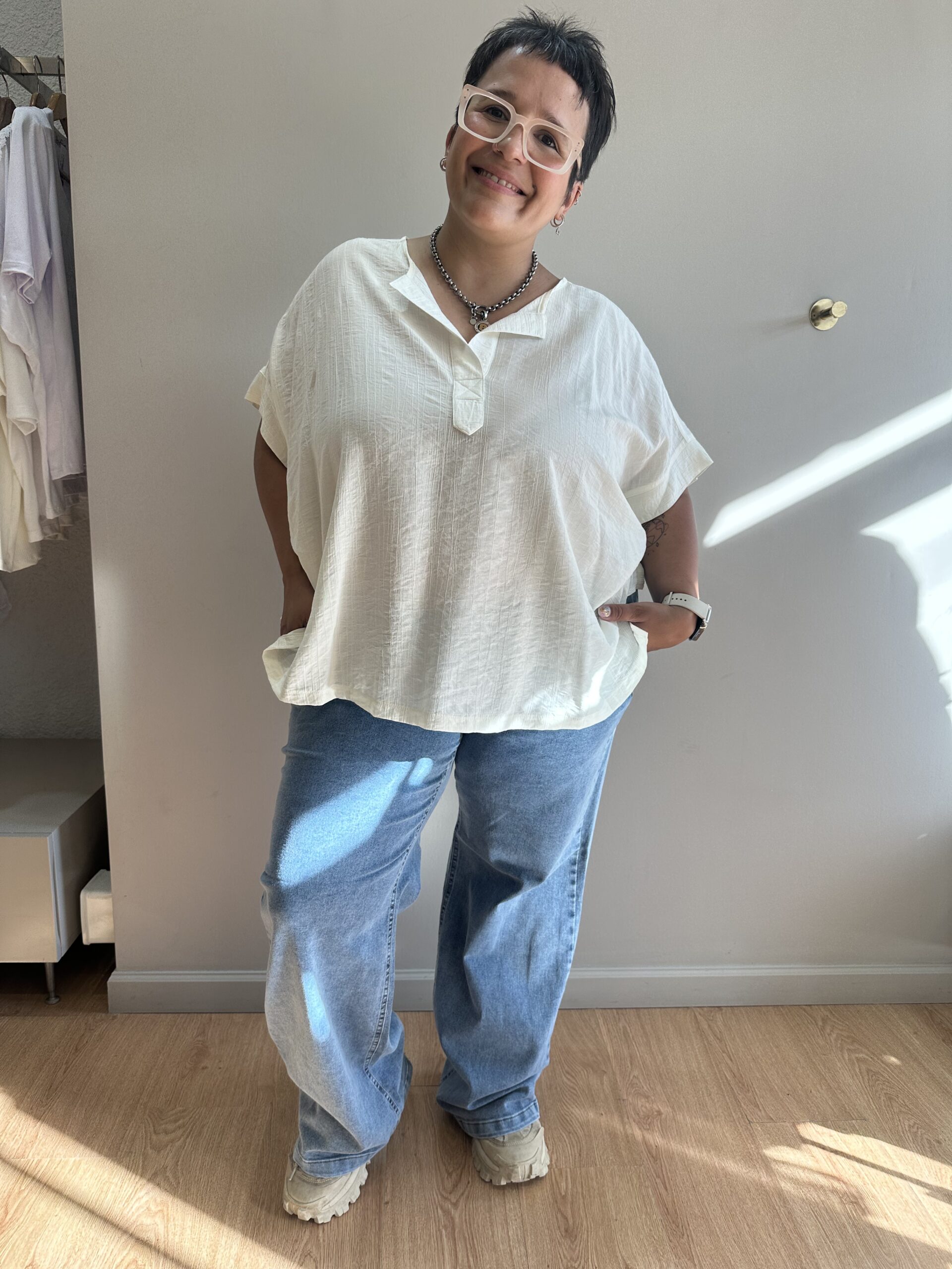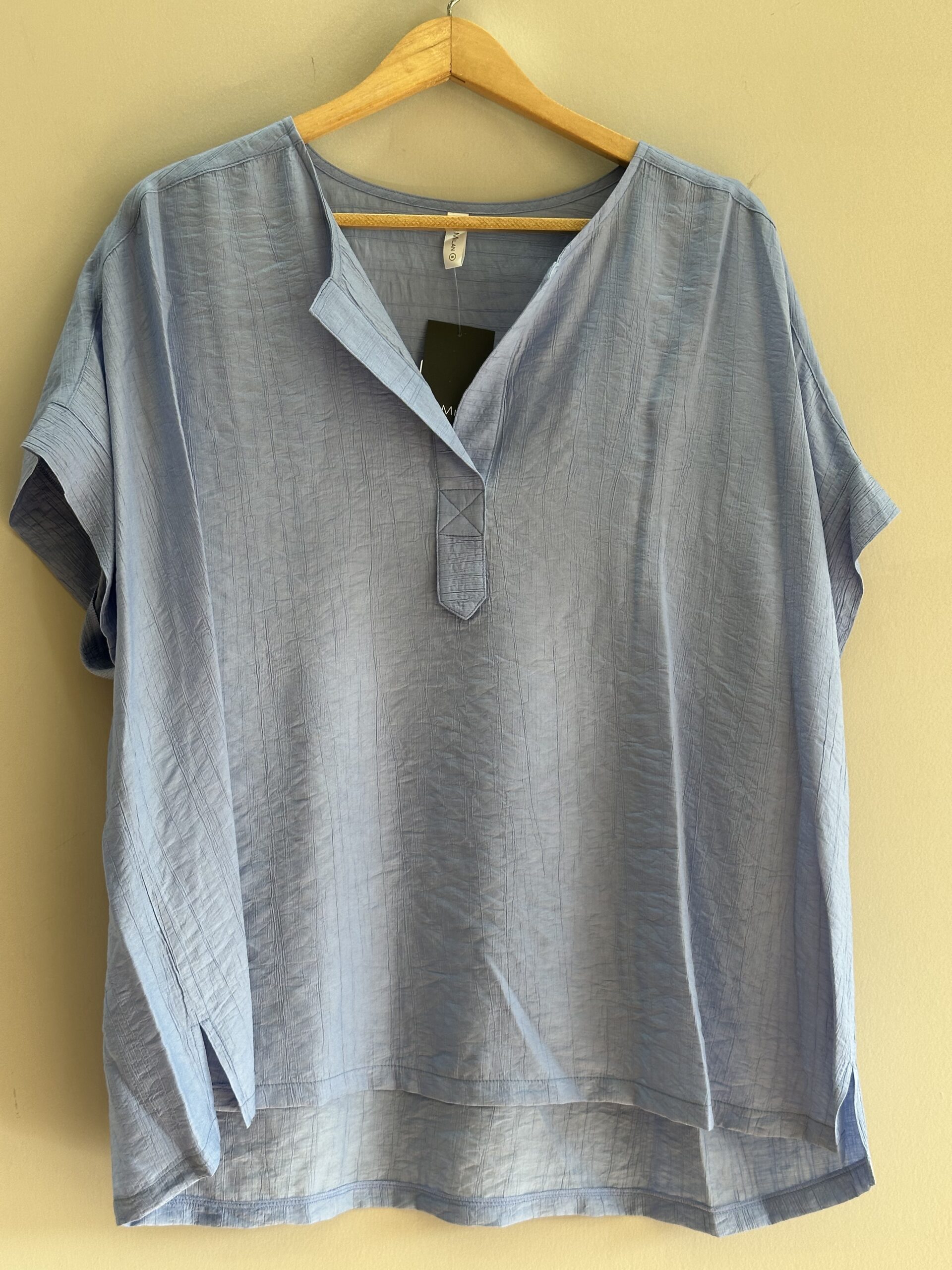 Blusa con cuello Mao, cartera sin botones, manga corta.