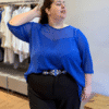 Estefi usa talle 60 y sus medidas son Busto: 137 cm., Cintura: 121 cm., Cadera:, 155 cm.
