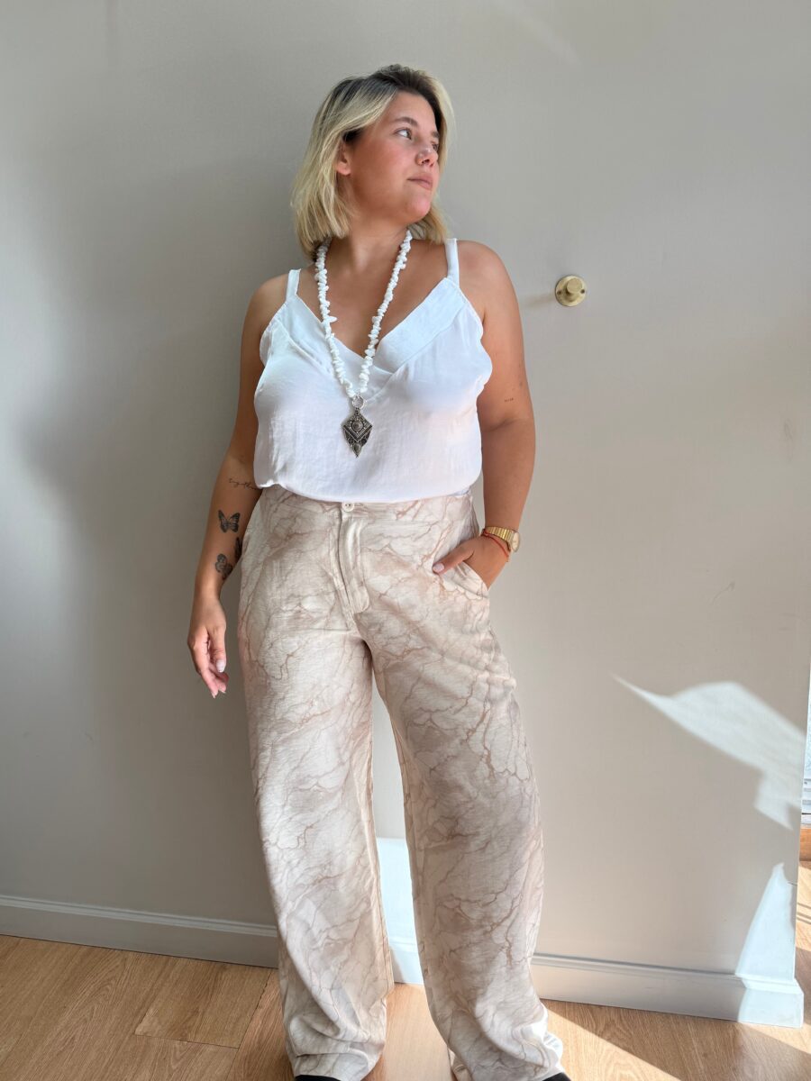 Musculosa de seda con bretel fino y escote cruzado. color blanco.