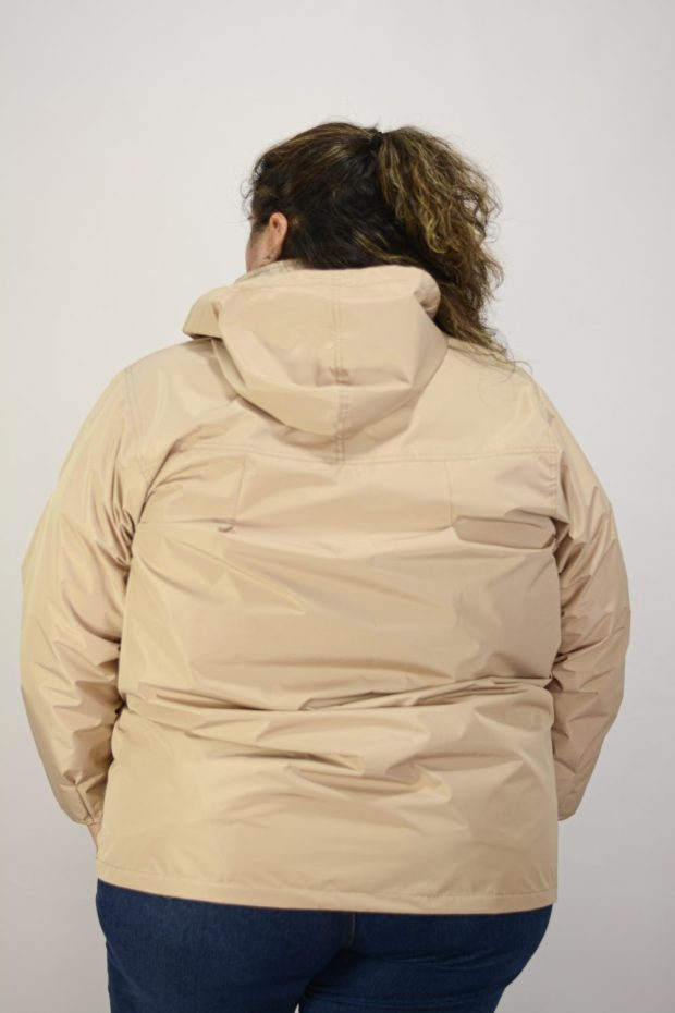 Tiene capucha desmontable con cordones para ajustar según tu gusto.