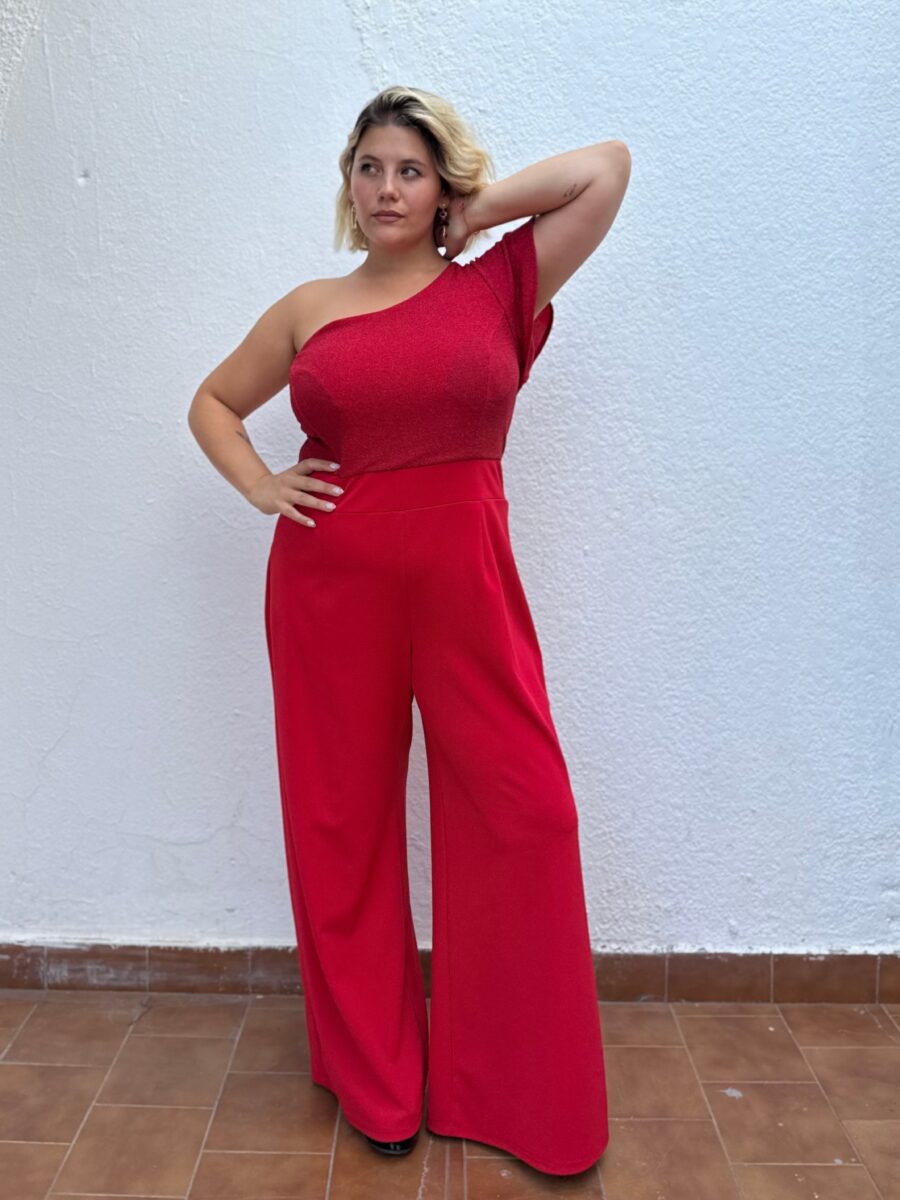 Enterito en jersey y lurex elastizado con un solo hombro.