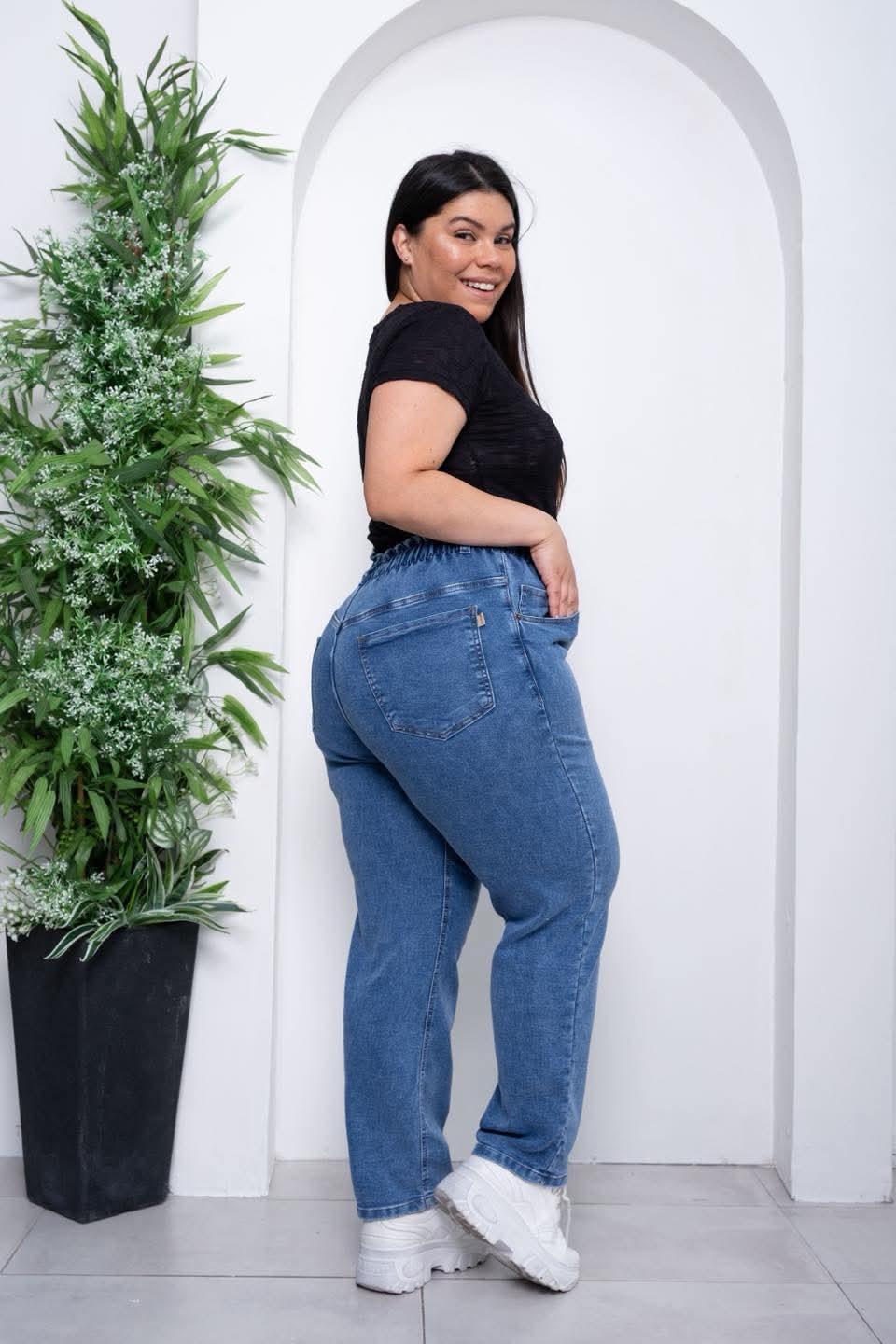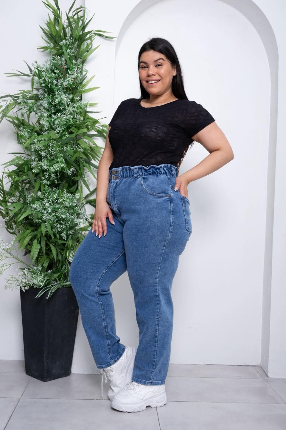 Si buscás un jean que te abrace cómodo y te haga sentir bien todo el día, este modelo es para vos. Tiene ese estilo mom que nunca falla, con un calce relajado pero favorecedor que acompaña tus curvas sin marcar de más.