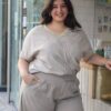 corte recto de tela lino elastizado y cintura elastizada.