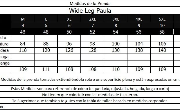 Tabla de Medidas de la Prenda: