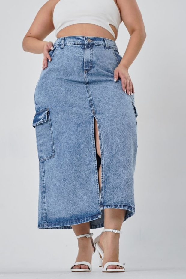 Pollera Cargo jean rígido ,gastado ,tajo delantero .