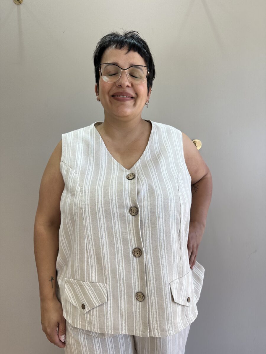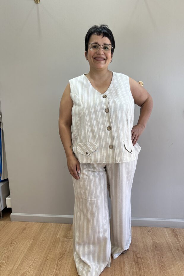 Buscá una prenda tuya que tenga una tela similar, y sacale las medidas, comparalas con las medidas que te dejamos en la galería de imágenes o en la descripción.
