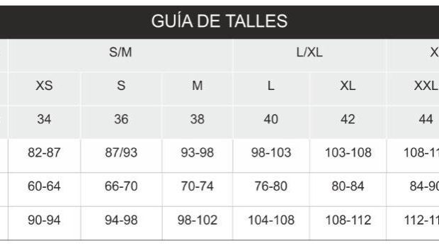 Tabla de Medidas de la Prenda: