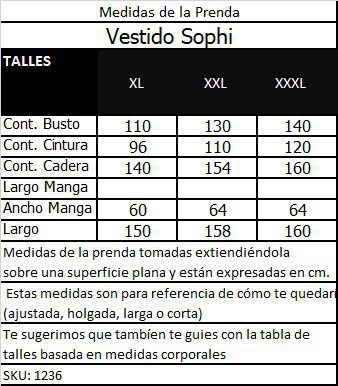 Cont. de Busto: 110 cm., Cont. de Cintura: 100 cm., Cont. de Cadera: 125 cm.