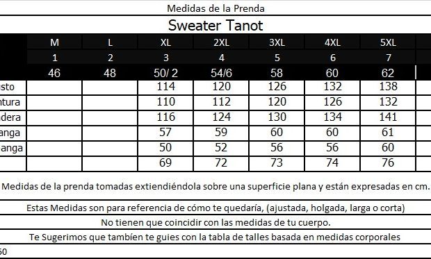 Consejo: Para saber elegir el talle correcto, la mejor manera es comparando las medidas de nuestra tabla de medidas de la prenda con una prenda que te quede bien! Si tenes dudas entre 2 talles te aconsejamos que elijas el talle mas grande!