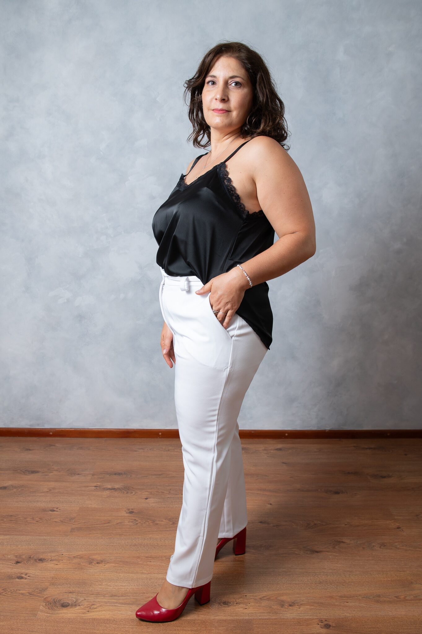 Nuestro pantalón de corte sombé de crepé premium está diseñado para resaltar tu figura. Con un corte elegante y una tela de alta calidad que se adapta perfectamente a tu cuerpo, es la prenda que se convierte en un must-have para cualquier mujer moderna y sofisticada.