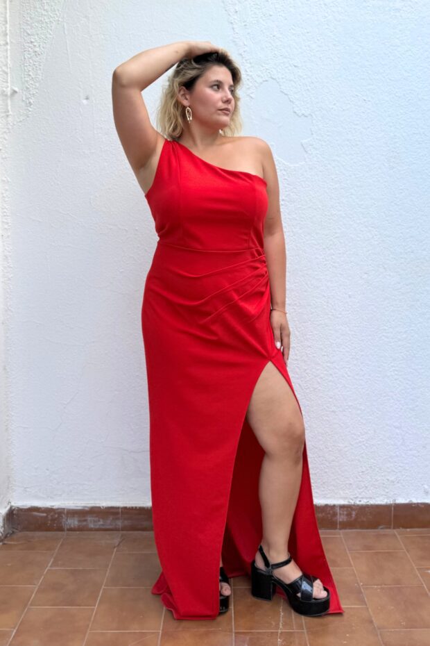 Vestido de Crepe, elastizado con detalle de tablas y super tajo.