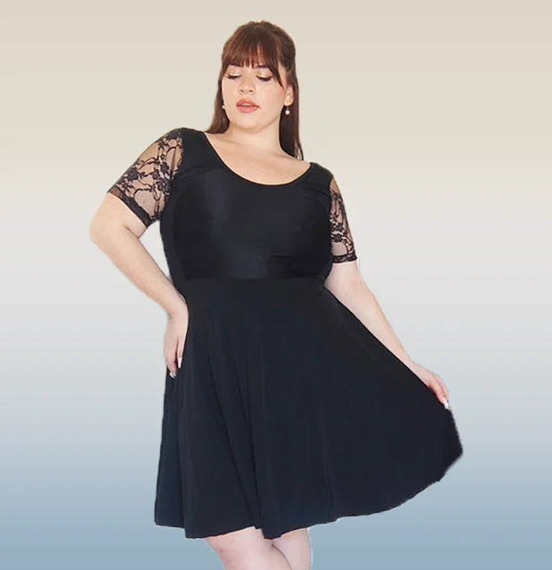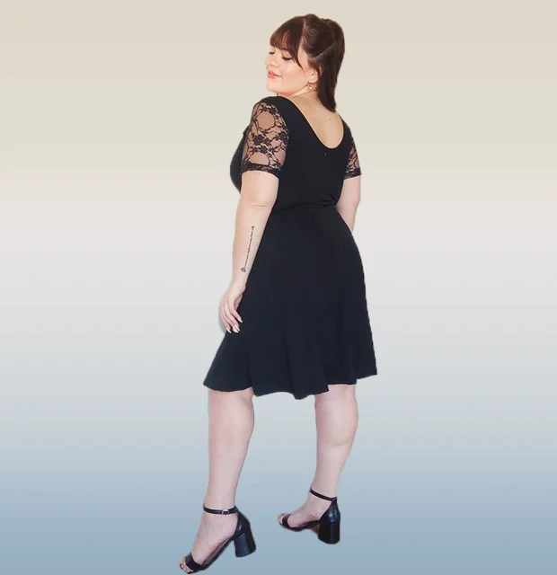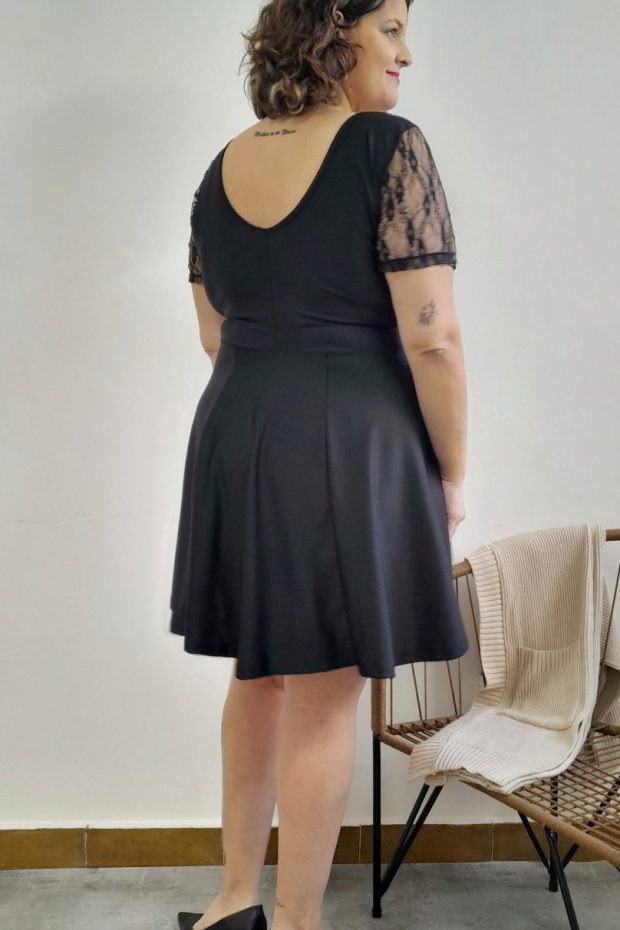 Tela: Tricot Base Negro Satinado, combinado con mangas en Encaje Flores.
