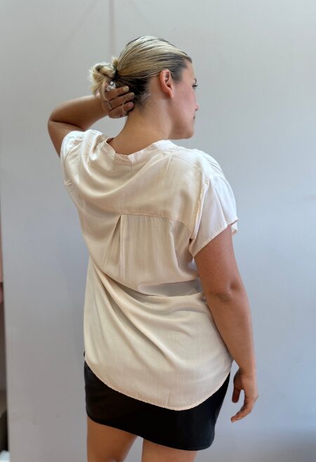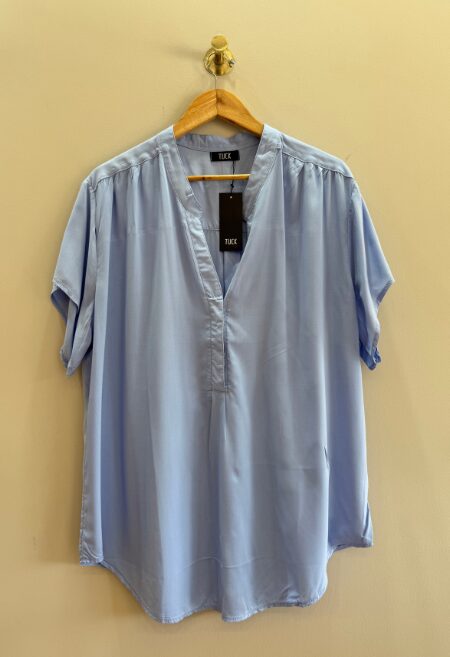 Blusa de fribrana en colores lisos, manga japonesa y cuello mao.