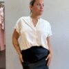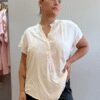 Blusa en rayon viscosa con cuello mao y manga japonesa.