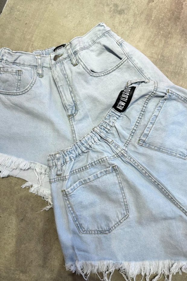 ES DENIM RÍGIDO CON ELASTICO EN LA CINTURA ATRÁS.
