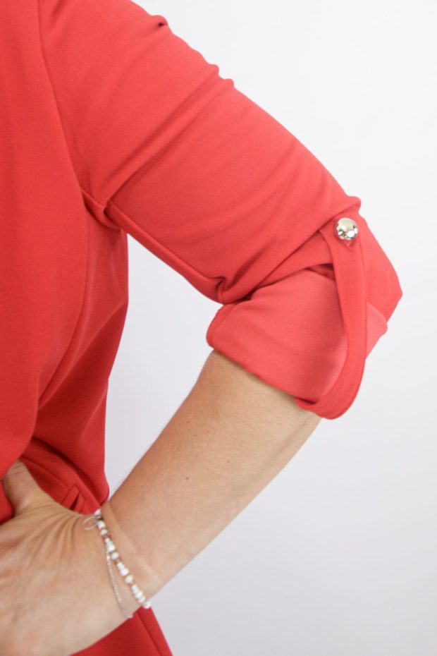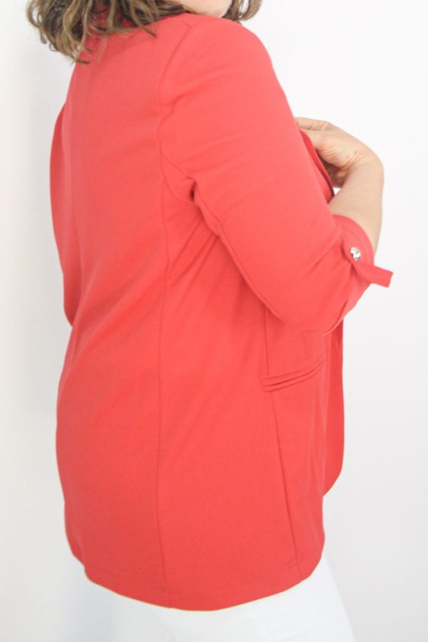 CONFECCIONADO EN CREPE ZARA ELASTIZADO. CON SOLAPA, SIN FORRERIA, TIENE TIRITA EN LA MANGA PARA AJUSTAR.