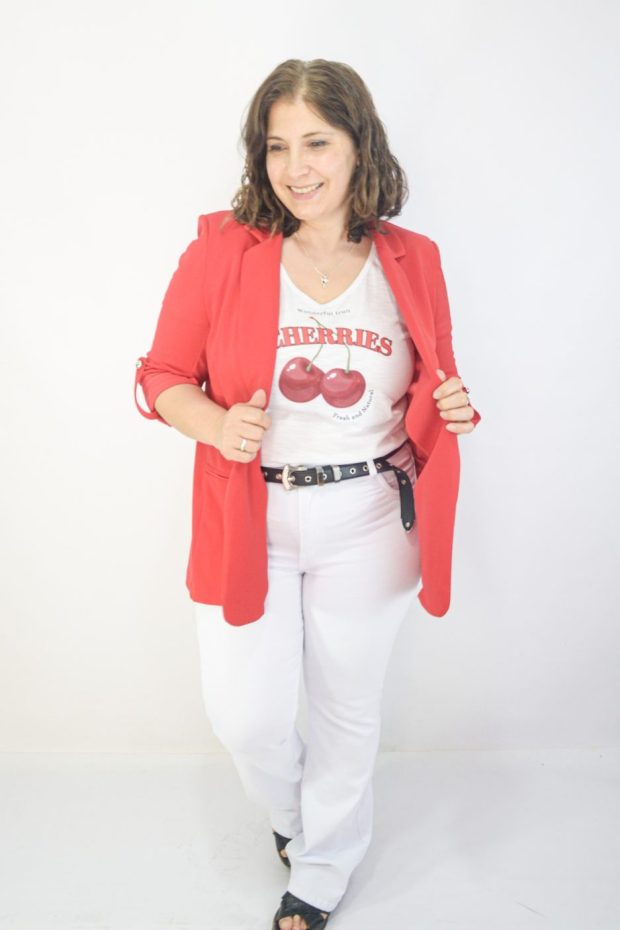 La Modelo Laura usa talle 46 usa Blazer talle 4